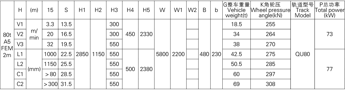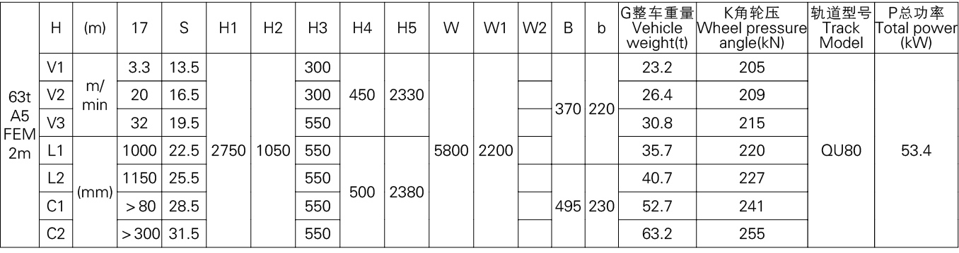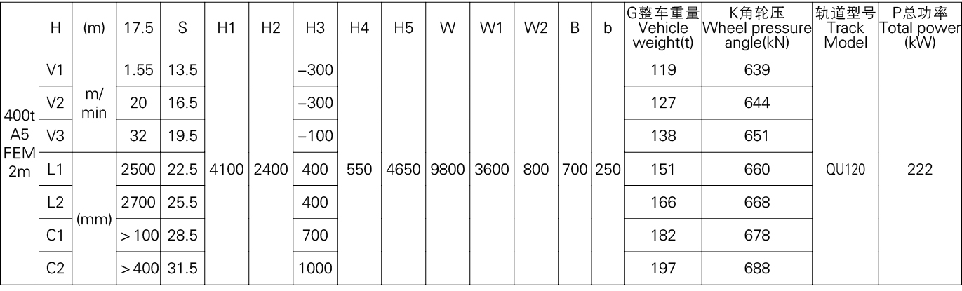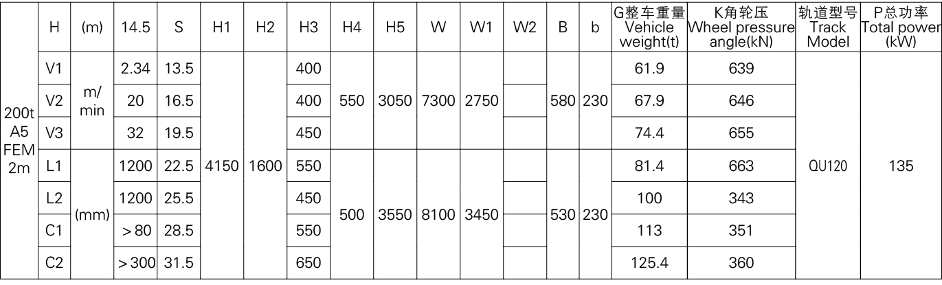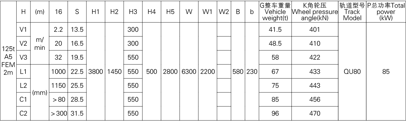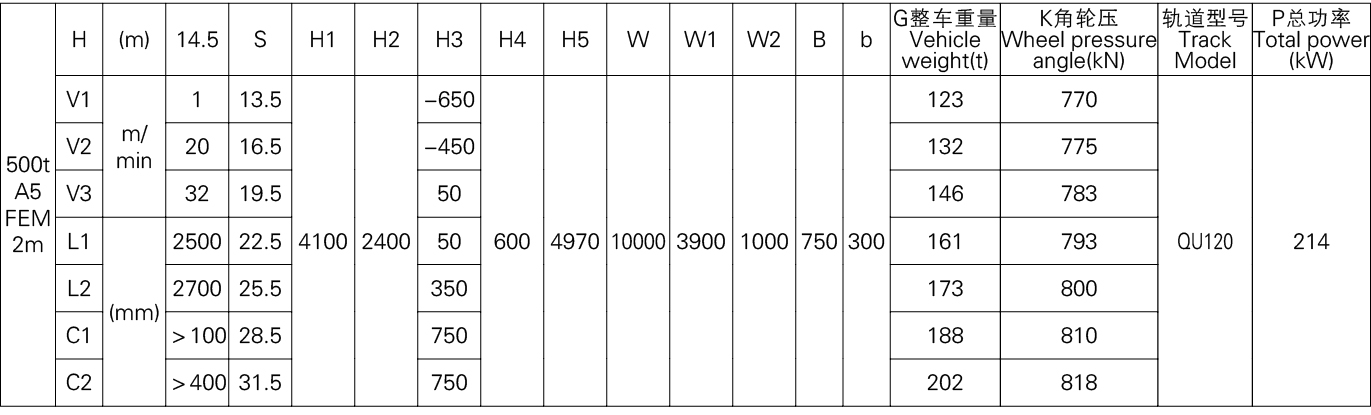 3、表中的尺寸,重量,轮压供客户订货时参考,如果客户的需要条件发生变化,如工作级别,速度,起升高度有变化时,相应的参数,尺寸,重量,轮压等都会发生变化,实际的参数,质量,轮压以合同的要求为准。